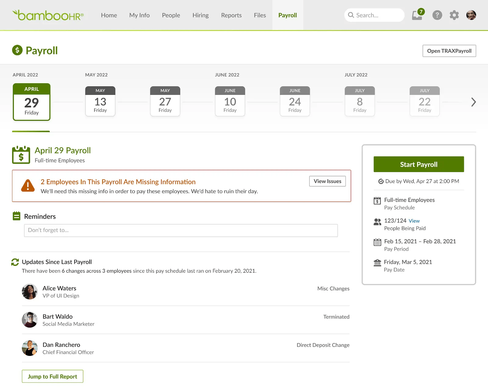 - Real-time payroll reports and analytics that connect to broader people metrics